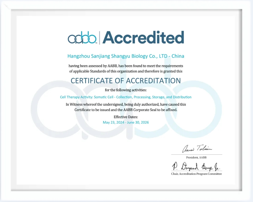近期,三江控股?上御生物以“零整改項(xiàng)”的評審結(jié)果,通過了全球血液和細(xì)胞治療領(lǐng)域權(quán)威規(guī)范制定者AABB的認(rèn)證。